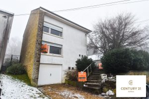 VENDU : Habay-La-Neuve, à deux pas du centre-ville et dans un quartier calme dans une voie en sens issue, Century 21 Cofilux a le plaisir de vous proposer cette ravissante maison 4 façades plain-pied de 1970 sur un terrain de 9,2 ares, exposé au N-O. La maison se compose comme suit: Rez: hall d’entrée, salon-séjour, cuisine, salle de douche, chambre (14m²), wc et garage. Au 1er Etage: Hall de nuit, 2 chambres (14 et 14m²) et 2 petits espaces grenier. La toiture est en ardoises artificielles, la chaudière au mazout (citerne 2.000 litres), la séparation des niveaux est en béton, les châssis sont en bois simples vitrages. Surface bâtie 100 m², PEB D (285 kWh/m².an – 48.791 kWh/an , 20150902011724), Installation électrique non-conforme. RC 803 €. Travaux à prévoir (électricité, cuisine équipée, châssis, chaudière, décoration et peinture). Idéal pour petites familles, frontaliers ou jeunes couple.